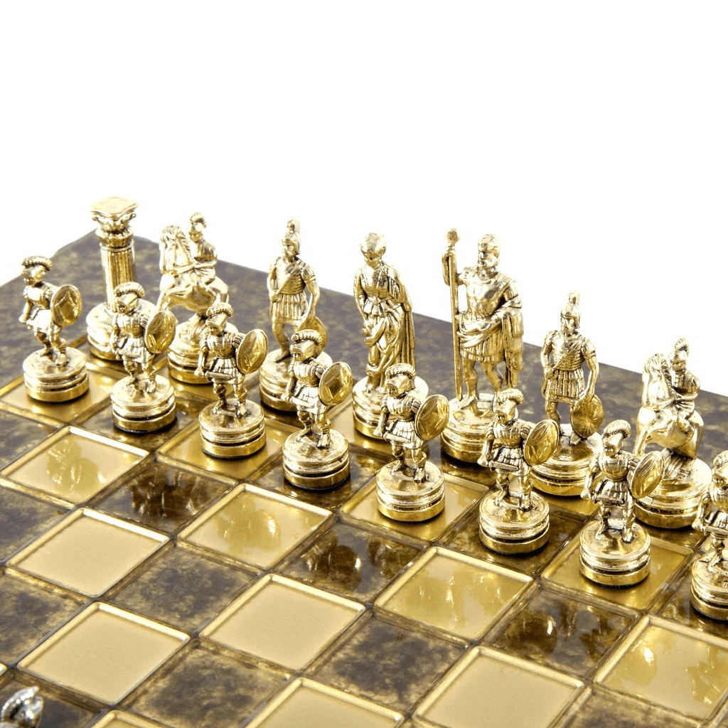 Motivés par ces souvenirs, nous avons décidé de vous proposer un échiquier unique et de créer un ensemble de pièces en laiton qui rend hommage, mais qui ajoute aussi une nouvelle dimension à ce jeu classique emblématique à l’effigie de soldats issus de la Grèce antique ainsi que de l’empire Romain.