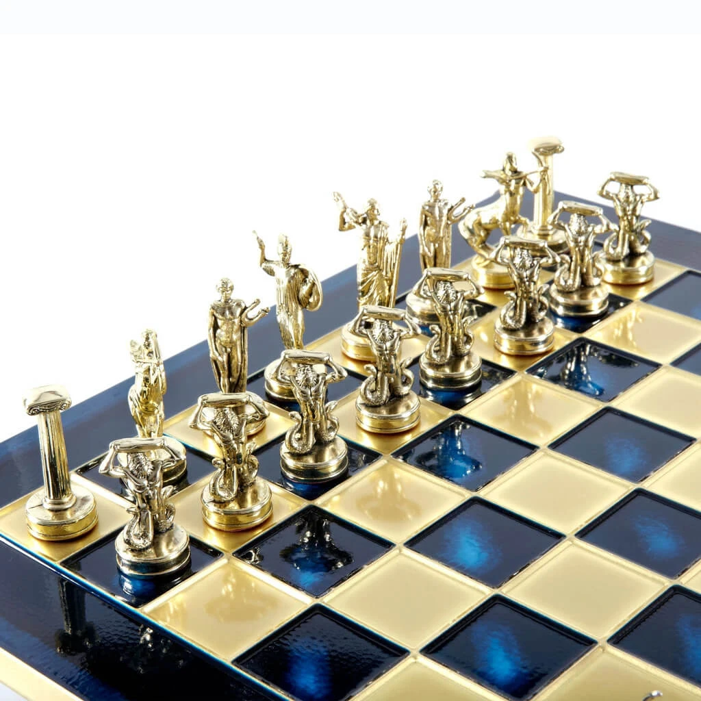 Motivés par ces souvenirs, nous avons décidé de vous proposer un échiquier unique et de créer un ensemble de pièces en laiton qui rend hommage, mais qui ajoute aussi une nouvelle dimension à ce jeu classique emblématique à l’effigie des dieux Grecs ainsi que des titans.