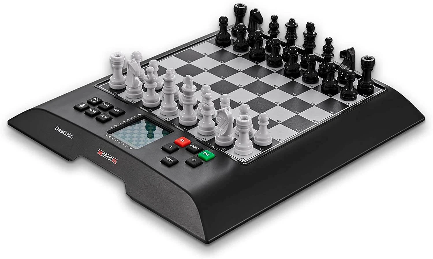 Le Chess Genius Pro est équipé de la dernière technologie de capteur de pression MILLENNIUM HighSensity pour un jeu fluide et confortable. L’écran éclairé permet de jouer dans toutes les conditions d’éclairage. Il est disponible en 7 langues pour tous les menus et textes d’aide ainsi que les instructions d’utilisation.