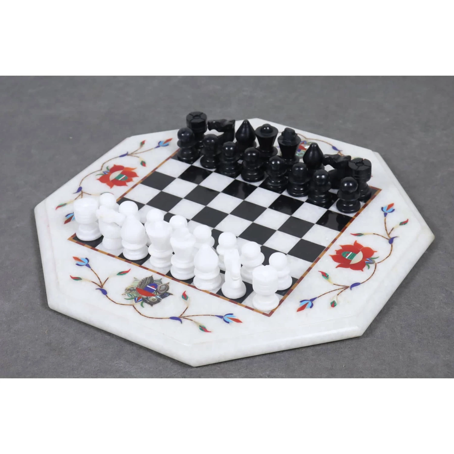 - Fabriqué en Inde par des artisans talentueux qui ont appliqué un travail de marqueterie exceptionnel sur les bords de l’échiquier en marbre.