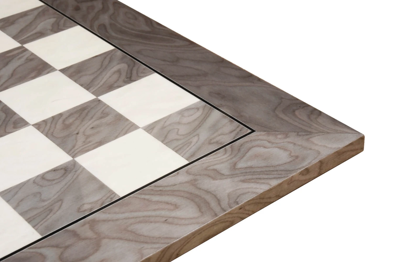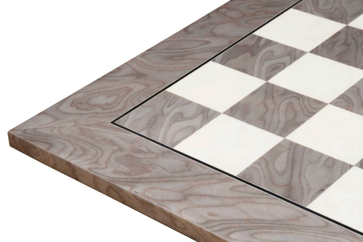 Cet échiquier gris massif en bois d’érable et en frêne a intégralement été fabriqué à la main par des artisans.