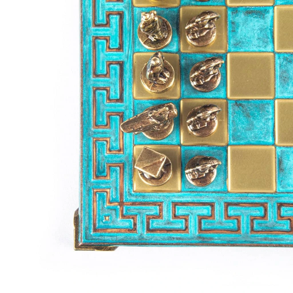 Motivés par ces souvenirs, nous avons décidé de vous proposer un échiquier unique et de créer un ensemble de pièces en laiton qui rend hommage, mais qui ajoute aussi une nouvelle dimension à ce jeu classique emblématique à l’effigie de la Grèce Antique.