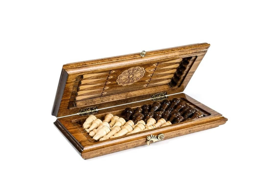 L’échiquier est pliable pour une meilleure portabilité. En retournant l’échiquier, vous pourrez également bénéficier d’un jeu de backgammon de grande qualité. L’échiquier est livré avec ses 32 pièces d’échecs ainsi qu’avec les dés et les pions nécessaires au jeu de Backgammon.