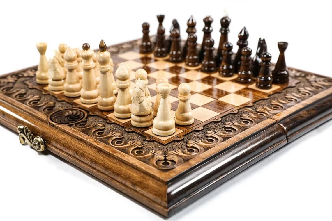 Notre Échiquier Vernis en hêtre et son jeu d’échecs en Noyer, une touche de somptuosité pour vôtre intérieur !