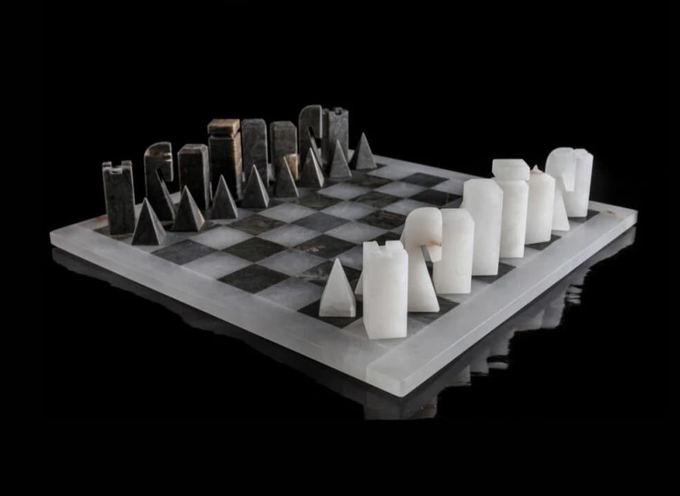 Cet échiquier d’exception aux nuances naturelles de blanc et de cendré est une invitation à la contemplation et à l’immersion dans le jeu d’échecs.