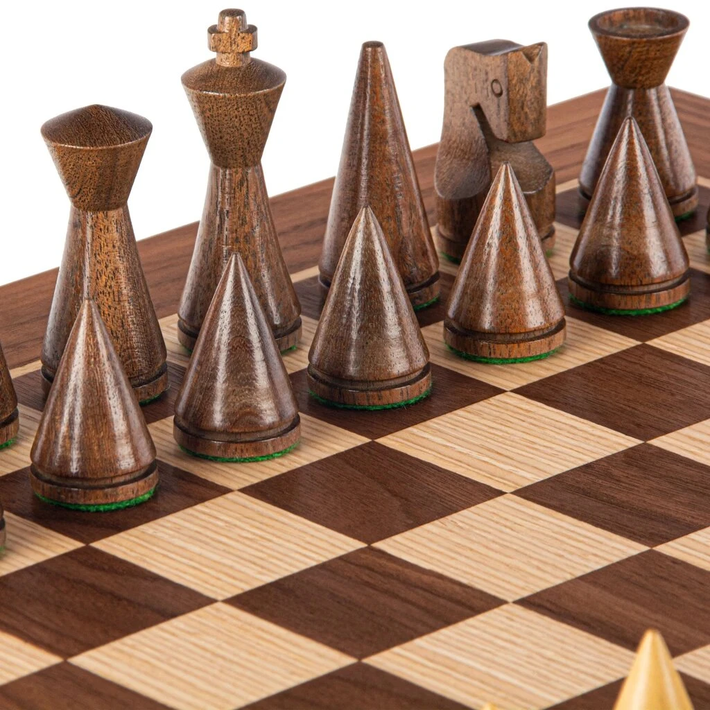 Découvrez ce coffret échiquier 40x40cm et son jeu d’échecs moderne en Noyer !
