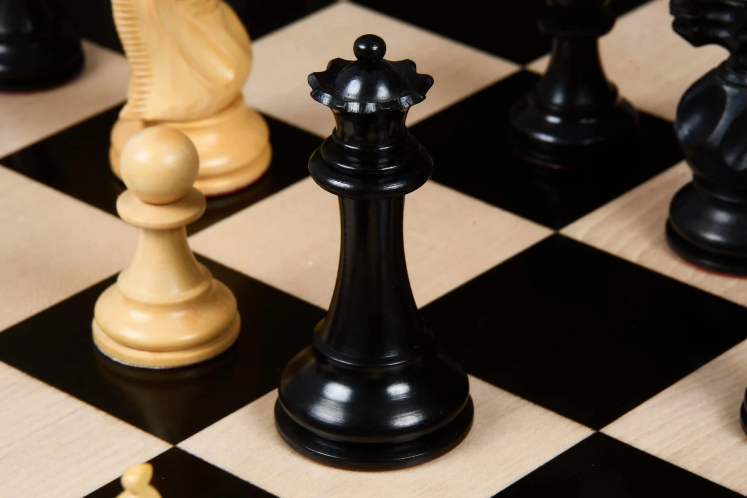 - Les pièces d’échecs et l’échiquier sont en buis et en ébène