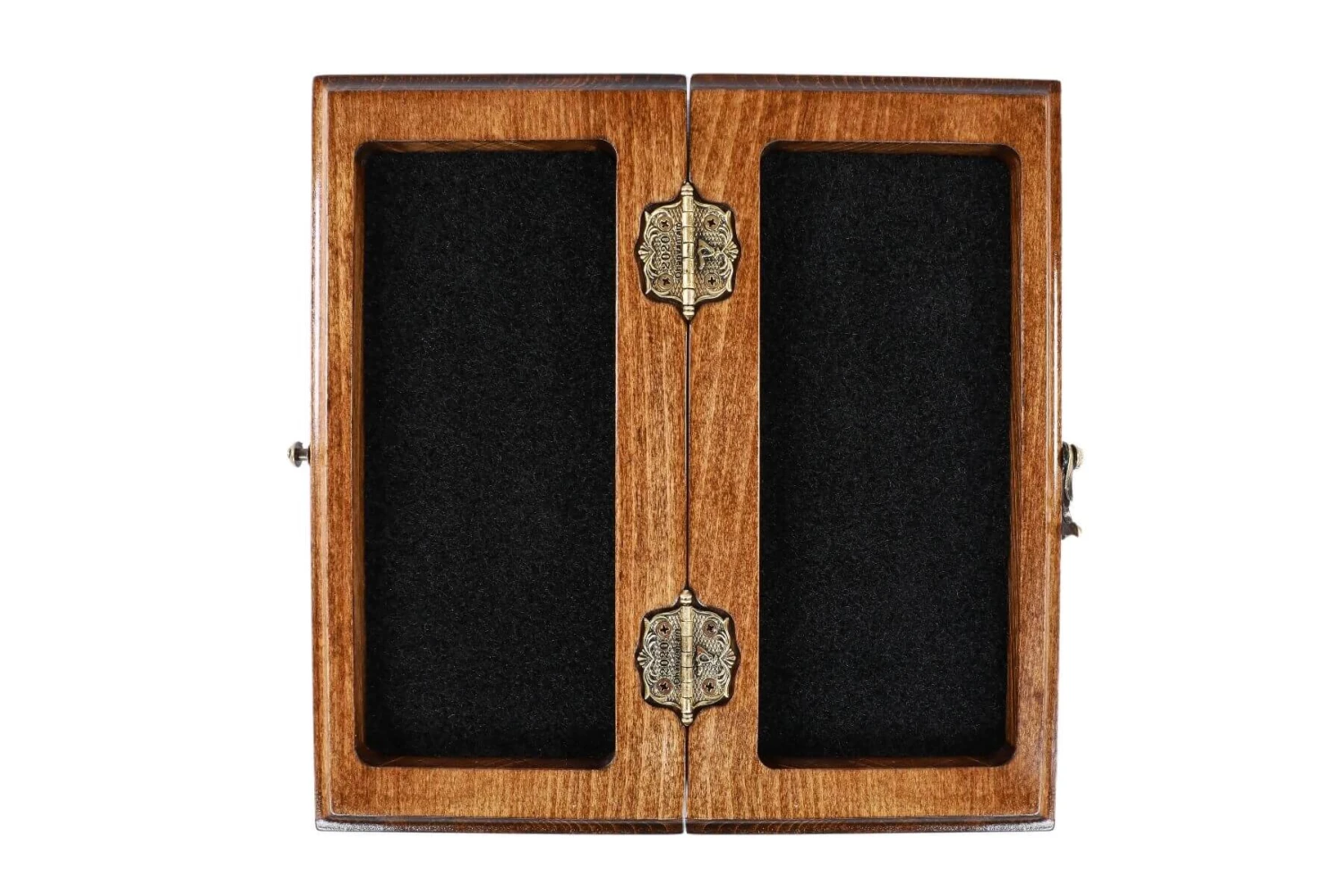 Ce bel échiquier a été confectionné à la main par une équipe d’artisans expérimentés. Un vernissage est effectué durant le processus de fabrication. Les charnières et les serrures de part et d’autres de l’échiquier ont été coulées en un métal de qualité : le bronze. Les chiffres et les lettres, quant à eux, sont gravés.