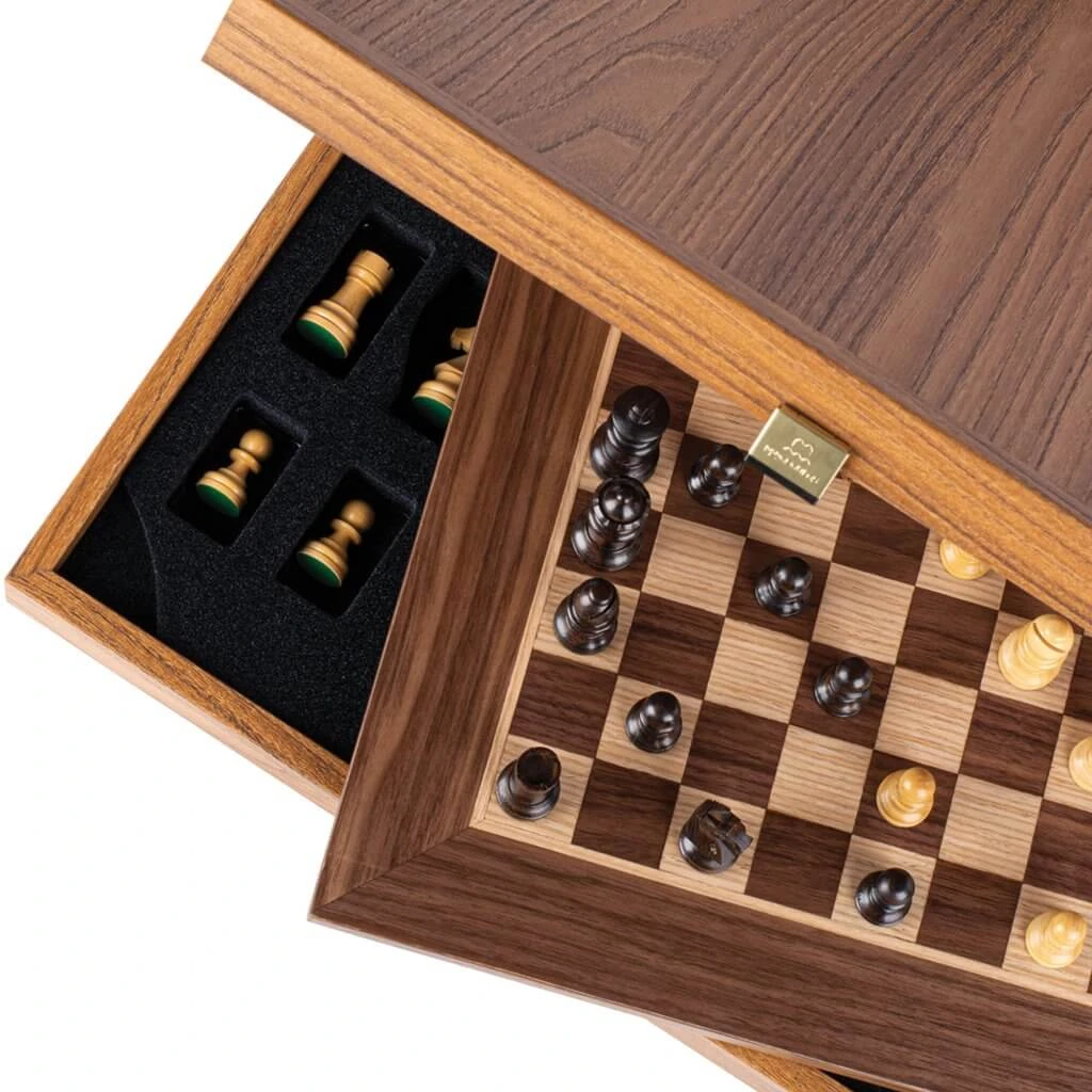 Le bois de noyer, dans cet ensemble échiquier