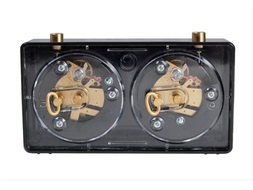Horloge d’échecs analogique très populaire conçue pour le jeu instantané. Grâce à son cadran de 20 minutes autour de l’horloge, elle est trois fois plus précise que les horloges analogiques standard. Elle possède un mécanisme de remontage intégré dans un petit boîtier en plastique, de grands cadrans lumineux faciles à lire et un très grand mécanisme de drapeau. Toutes les pièces mécaniques sont fraisées et elles sont fabriquées en laiton ou en acier inoxydable. Convient aux écoles et aux tournois. Il est disponible en plusieurs couleurs.