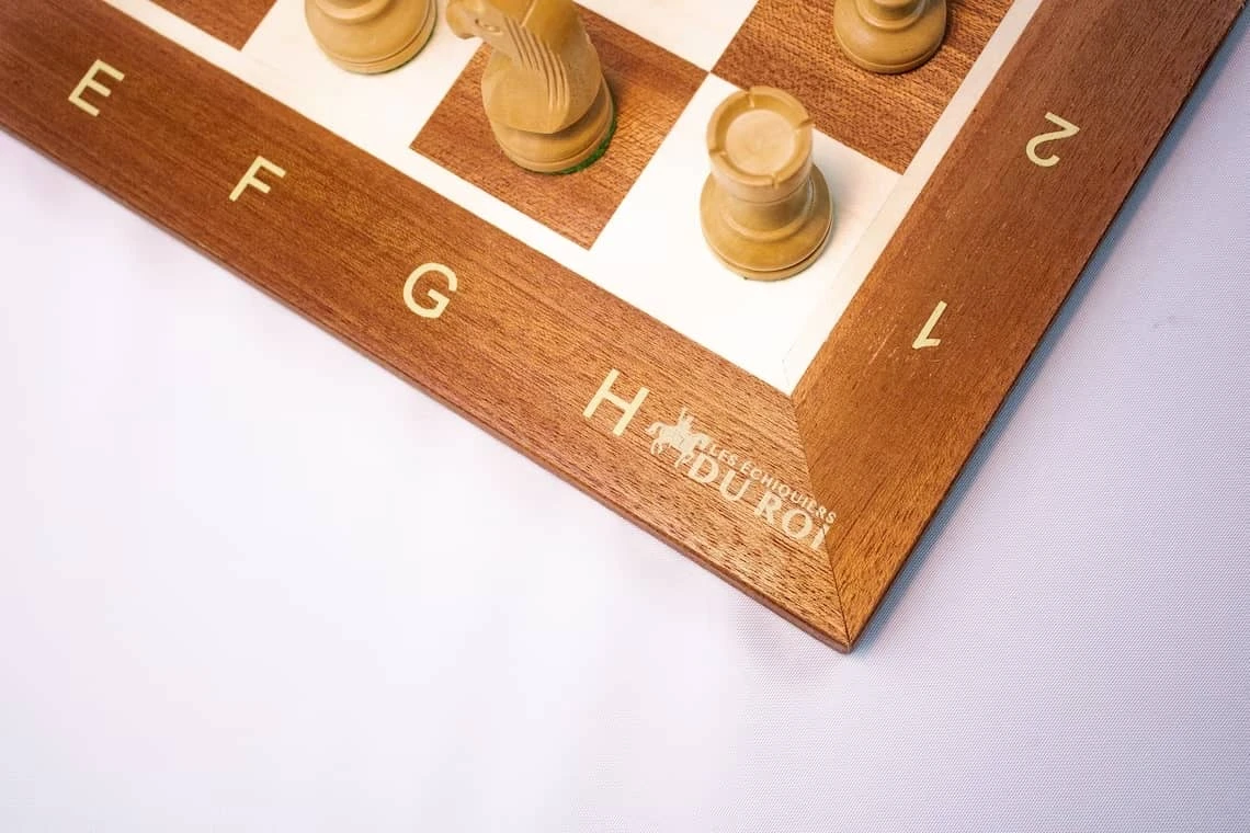 S’adressant principalement aux joueurs qui recherchent la perfection et l’exclusivité, le « Jeu d’Échecs de Tournoi » est une véritable merveille de précision. La splendeur de l’acajou, caractérisé par ses teintes séduisantes d’orange, s’entrelace harmonieusement avec des touches lumineuses d’érable, le tout orné de notations algébriques soigneusement sérigraphiées pour faciliter l’analyse de chaque mouvement stratégique. Ce plateau, d’une dimension généreuse de 54×54 cm, capture l’essence même de l’élégance et de la fonctionnalité.