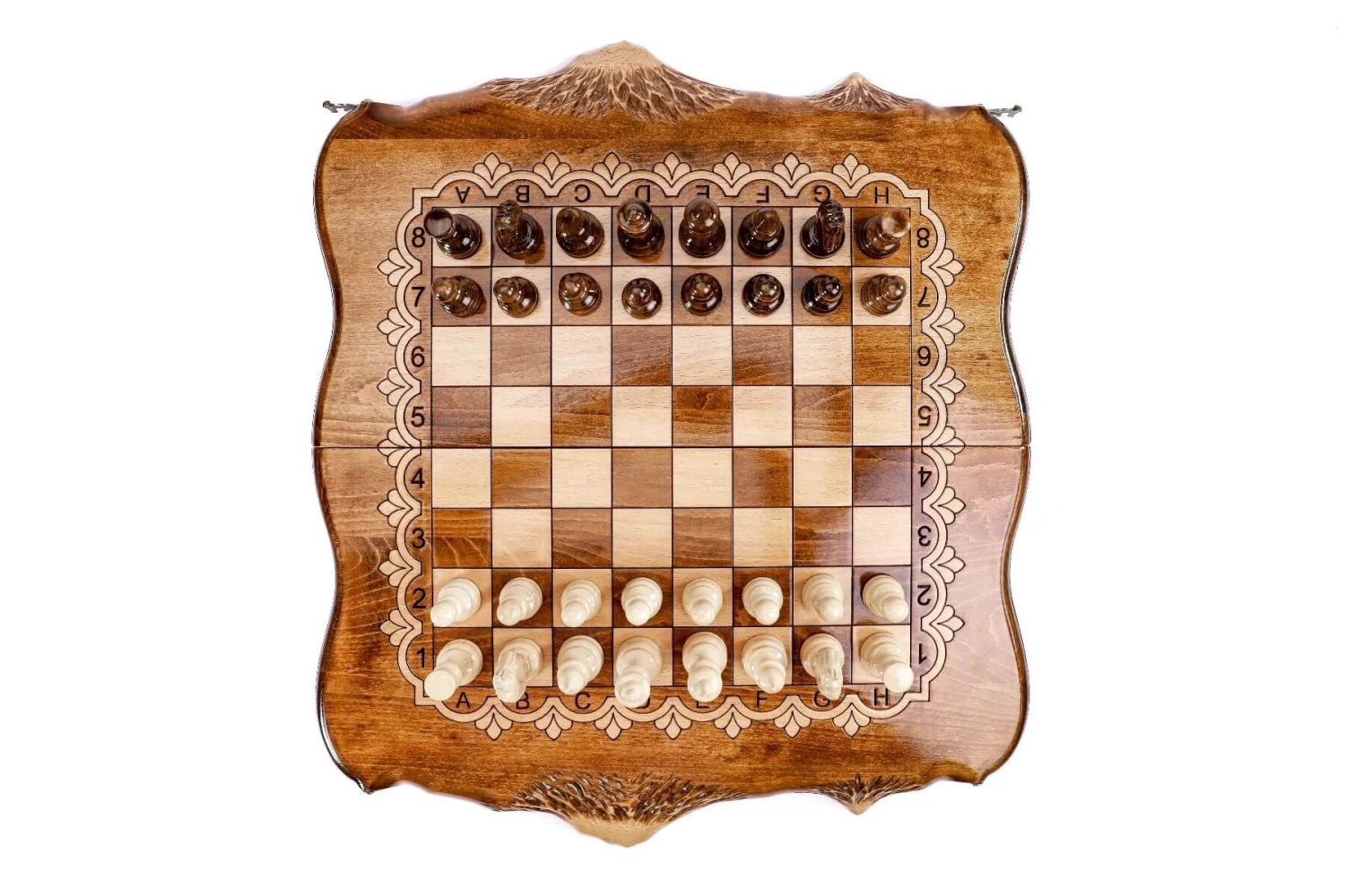 Ce beau jeu d’échecs de voyage de luxe est constitué de bois de hêtre et de noyer (pour les pièces d’échecs). Il est intégralement pliable, facilitant ainsi son transport lors des voyages !