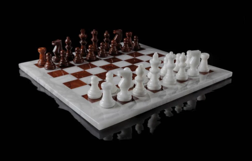 - Veuillez noter que les photos ne sont pas contractuelles : chaque échiquier en marbre et albâtre est une œuvre unique, et la pierre peut présenter des variations de couleur.