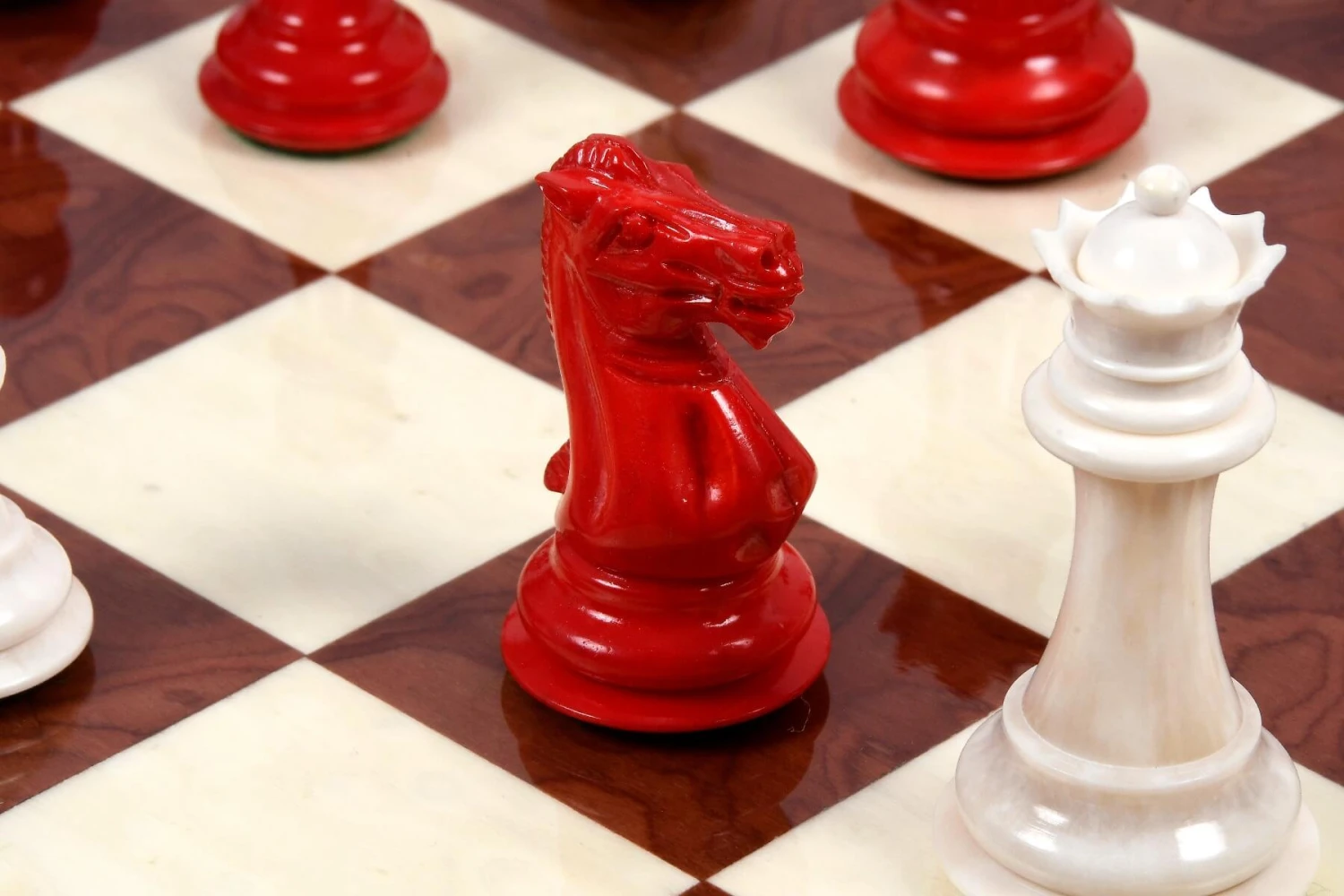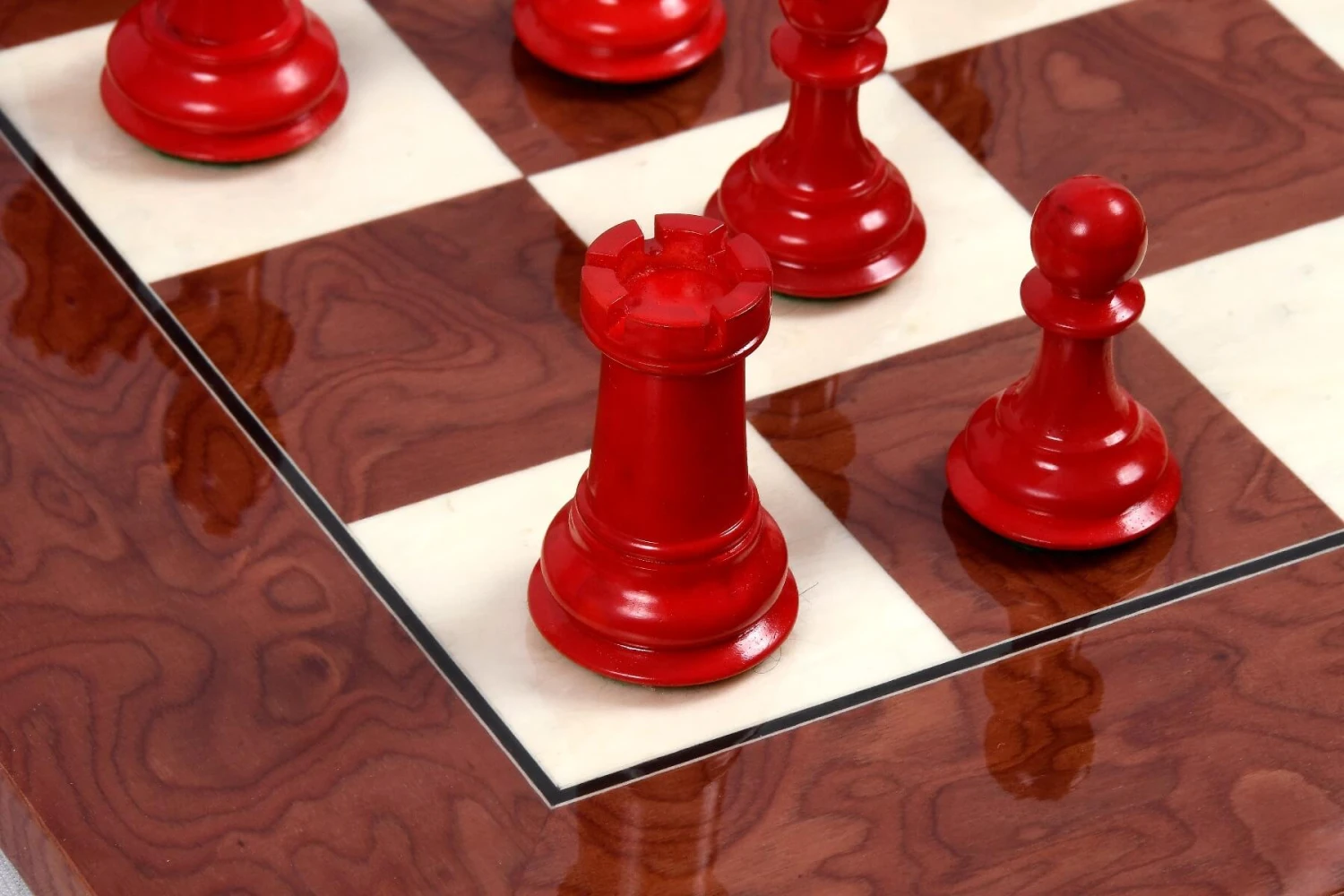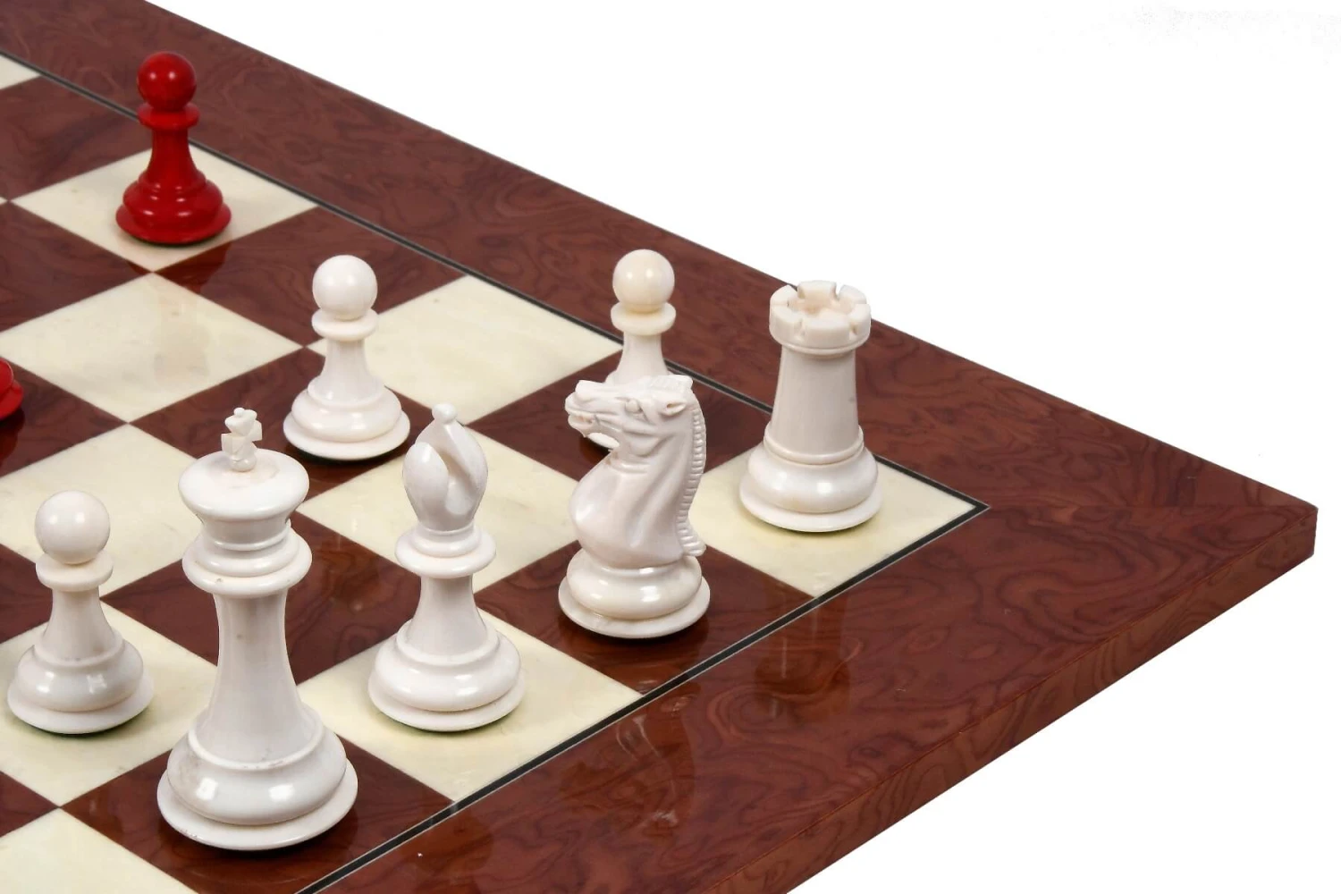 Ce prestigieux jeu d’échecs est composé de pièces en os de chameau ainsi que d’un luxueux plateau en frêne et en érable.