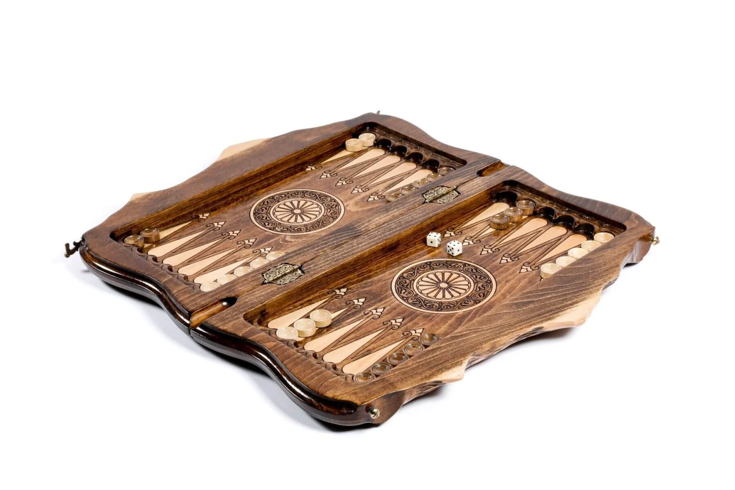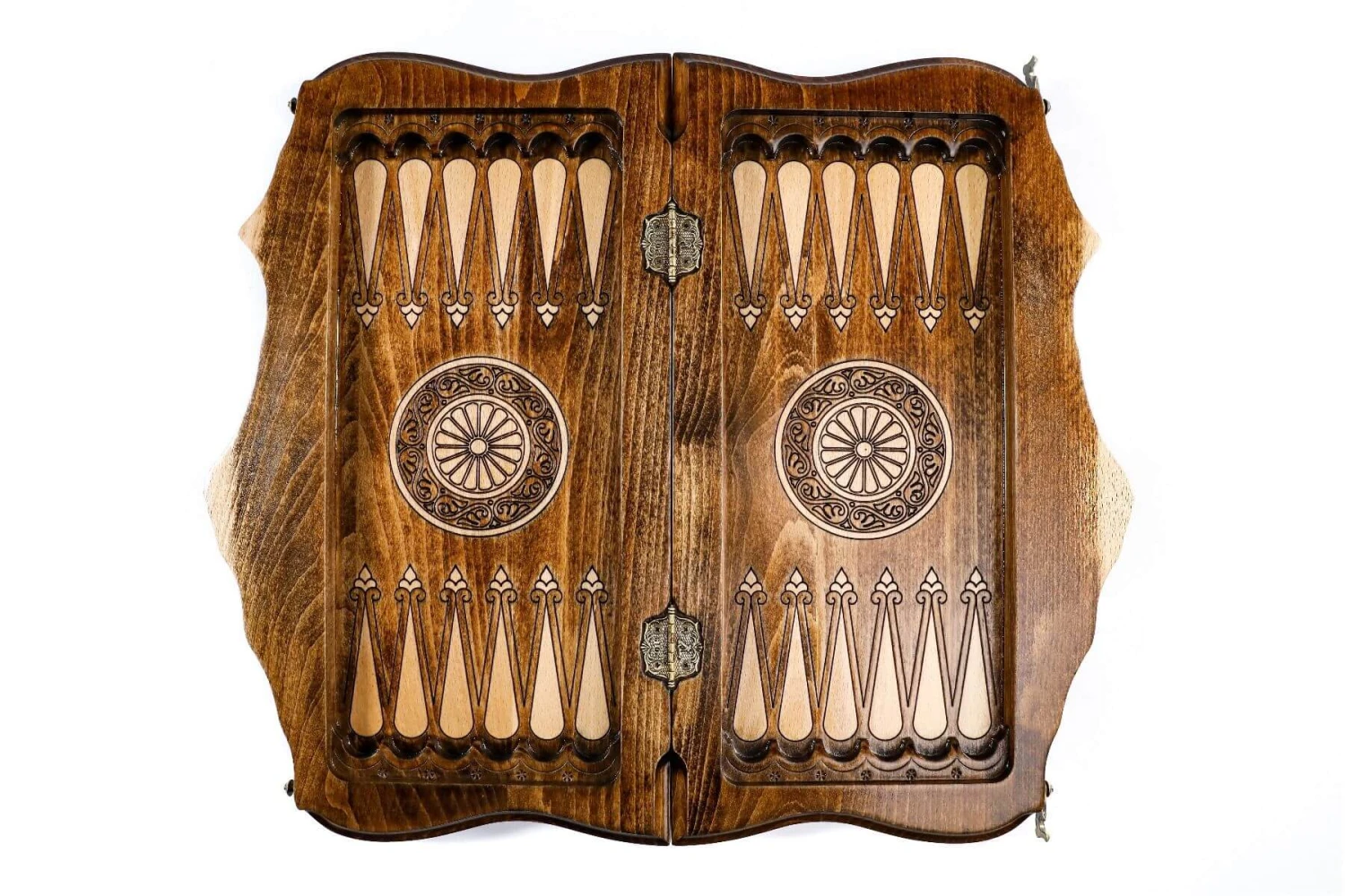 - Fait d’une masse entière de bois de hêtre et de noyer (certaines parties sont en bronze)