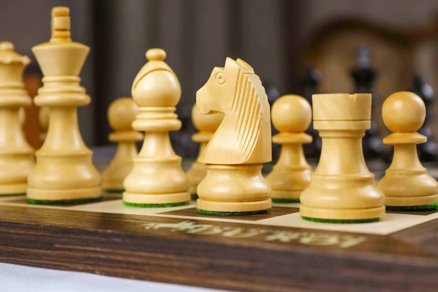 Nos pièces d’échecs, minutieusement sculptées en bois de buis ébonisé, portent fièrement l’héritage du style Staunton, immortalisé par l’ingéniosité de nos artisans experts. Elles s’inscrivent dans un contexte d’harmonie complète avec notre plateau de jeu de 40×40 cm, lui-même un chef-d’œuvre de conception.