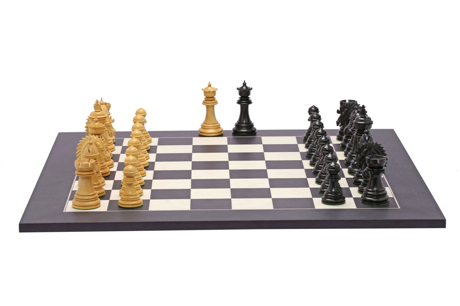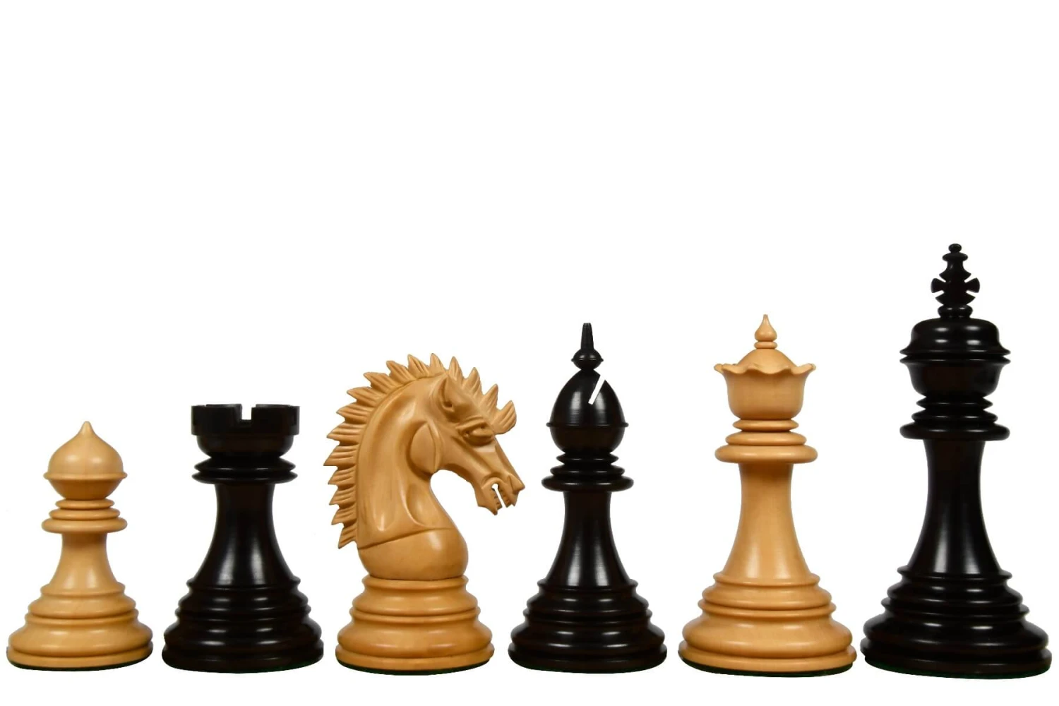 Ce jeu de pièces d’échecs Staunton a été fabriqué à partir de bois d’ébène et de buis : deux bois reconnus pour leur extrême qualité.