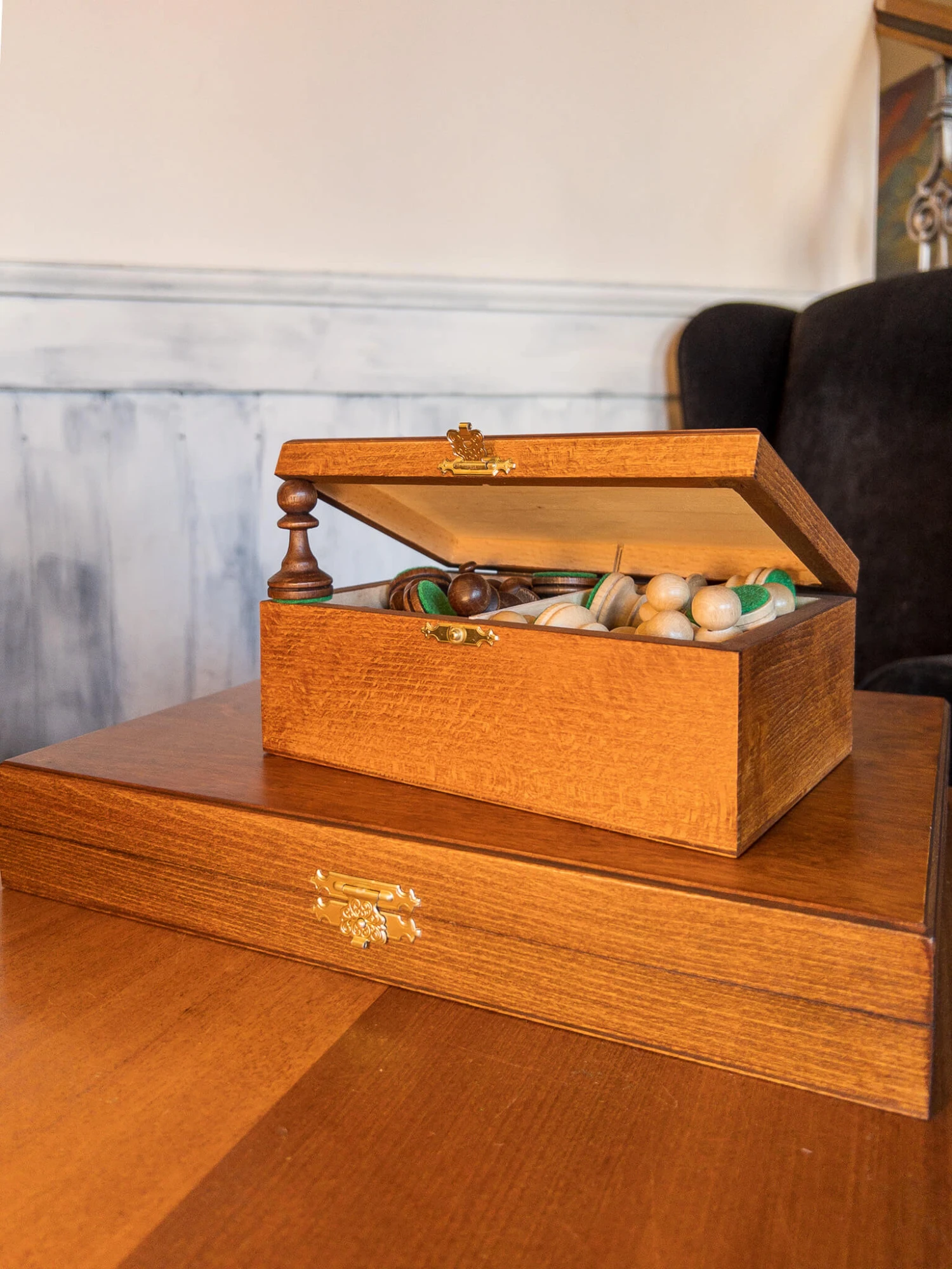 Nos pièces d’échecs en bois simple, des pièces à transporter facilement avec sa boîte d’échecs inclus !