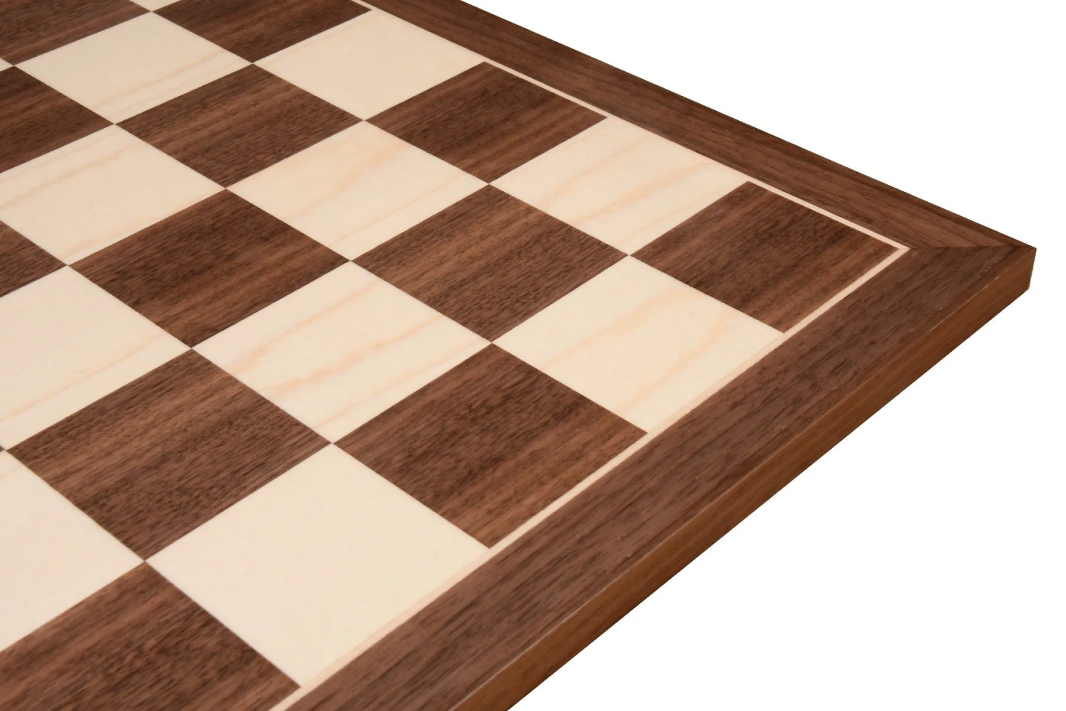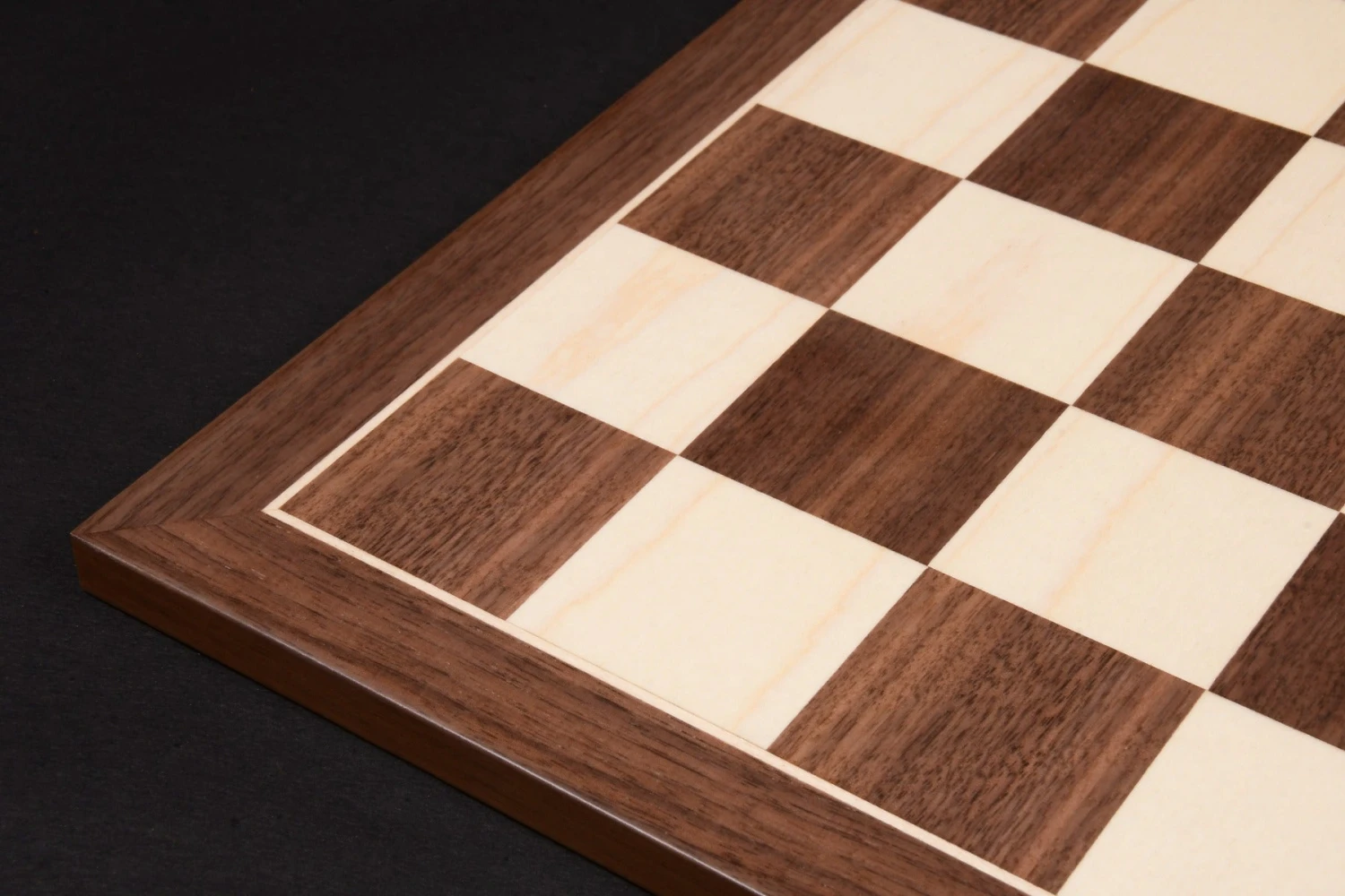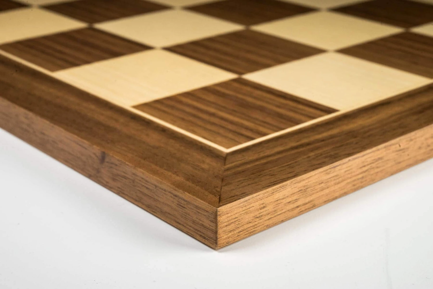 Découvrez ici notre somptueux plateau pour jeu d’échecs en bois précieux. Il est entièrement composé de bois de noyer et d’érable.