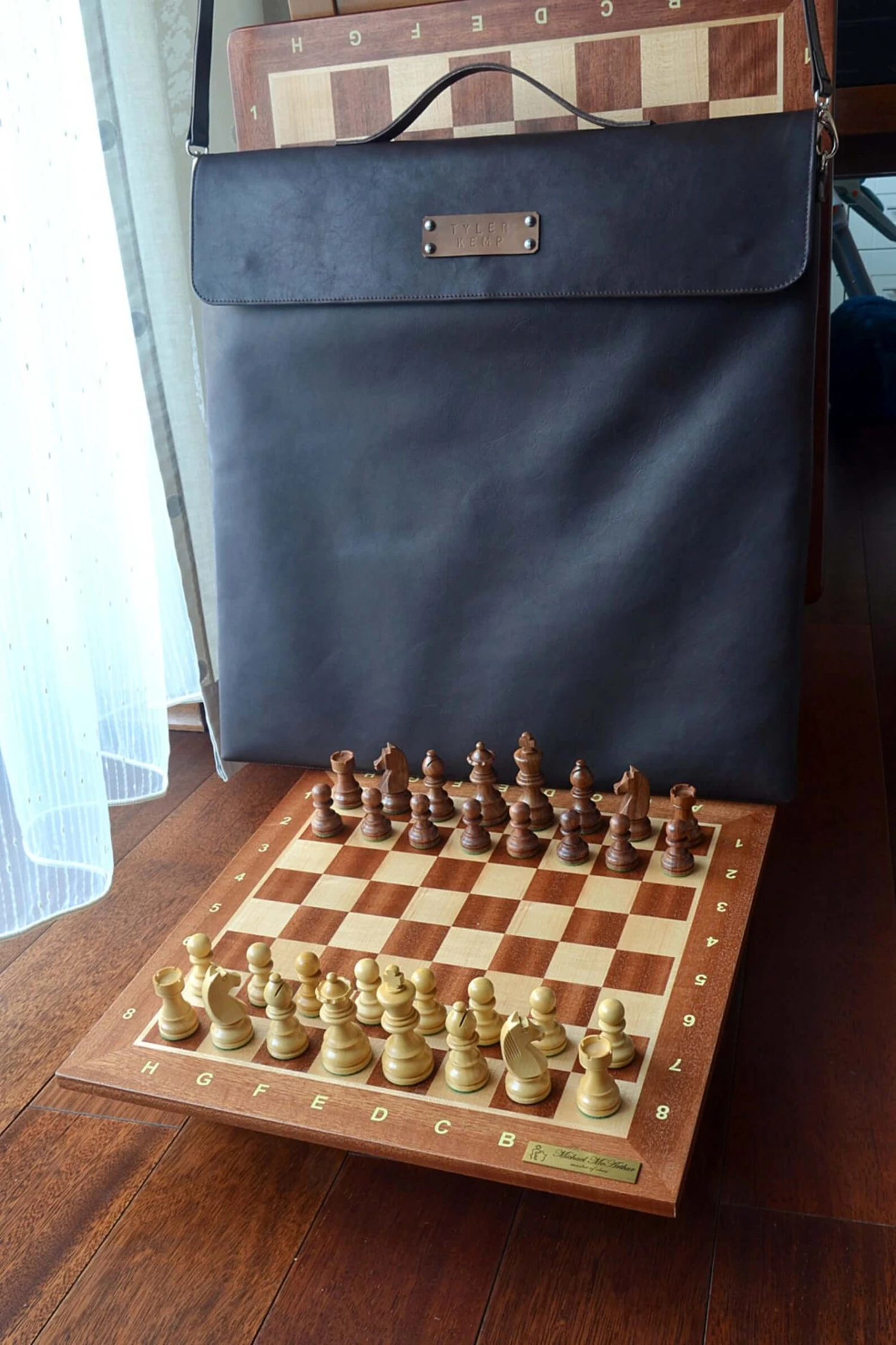 Protégez votre échiquier d’une superbe sacoche 48x48cm de transport entièrement en cuir de fabrication européenne et artisanale !
